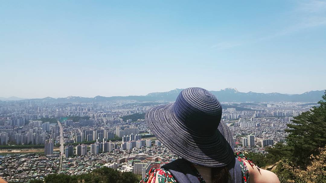 This was my first real exercise out after I had been injured, and it was nice to feel more like a normal human being again. I also only fell down once on the way up, so it really was easy going (I live up to the title of my blog- I am a clumsy person). Near to the top, as my legs were starting to feel closer to jelly than actual legs, there was a wooden deck that jutted off the side of the mountain where other hikers were gathered to take pictures with a view. We found our home-area pretty quickly, Lotte Tower being easy to spot from a distance.